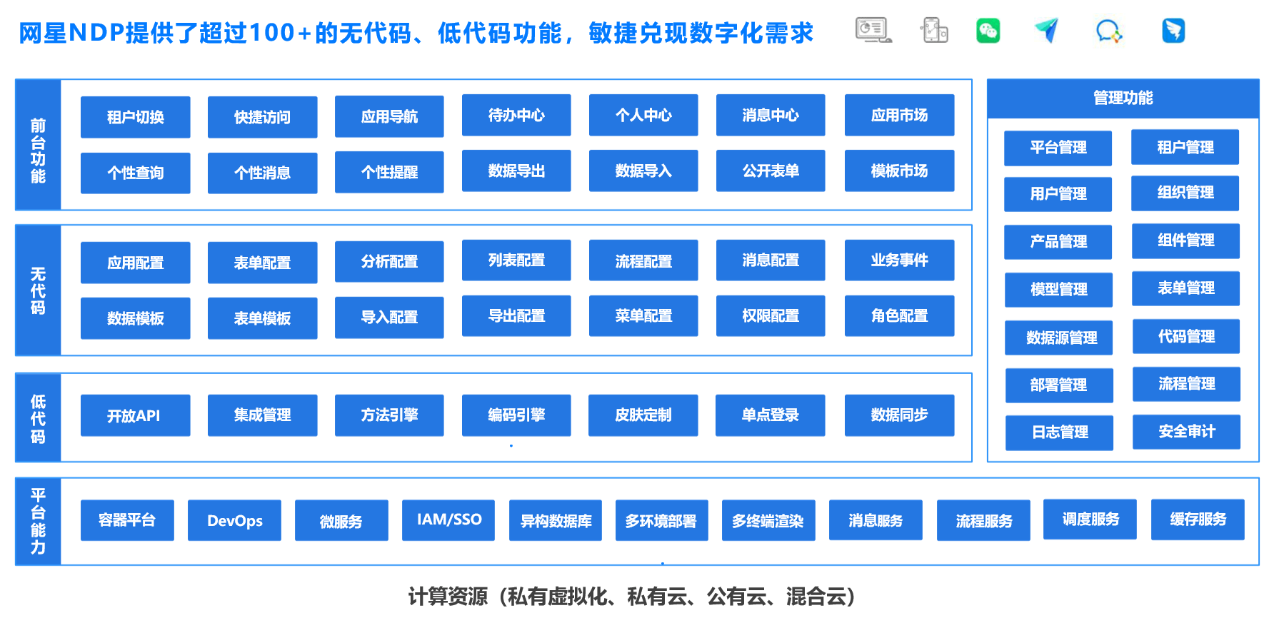 數(shù)智化意識(shí)的提升促使IT需求的爆發(fā),低代碼開發(fā)平臺(tái)為重塑IT生產(chǎn)力而生,網(wǎng)星軟件自主研發(fā)的低代碼開發(fā)平臺(tái)通過可視化方式、無(wú)需或少量編寫代碼,即可快速搭建各種應(yīng)用系統(tǒng)的開發(fā)平臺(tái),可以有效支撐應(yīng)用交付-設(shè)計(jì)、構(gòu)建、部署、運(yùn)維操作、監(jiān)控和迭代。